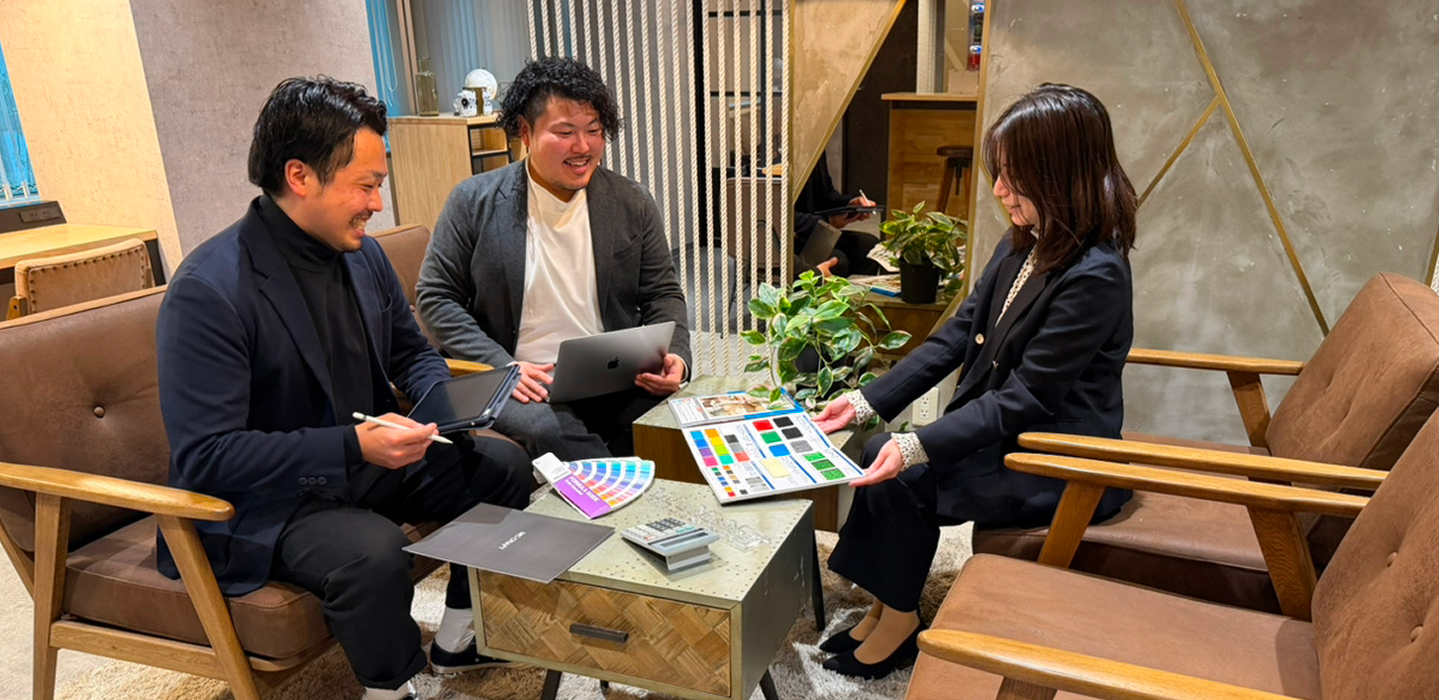 当社MVVの一つでもある「どうすればできるか?」は、バックオフィス業務においても大切にしている考え方です。業務をただ処理するのではなく、仕組みや流れを見直し、よりスムーズにまわる方法を考え続けています。社内業務が整うことで、お客様と向き合う時間にも更に余裕が生まれ、その積み重ねがより良い空間づくりに繋がると考えています。常に多方面にアンテナを張って、時にはおせっかいになりながらも(笑)より良い就業環境づくりを目指しています。
